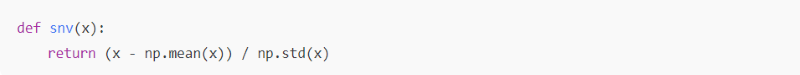 SNV是一種歸一化方法,通過對每條光譜進行中心化與標準化,消除光譜間的散射效應或強度差異,并保留光譜的相對形態。公式如下: